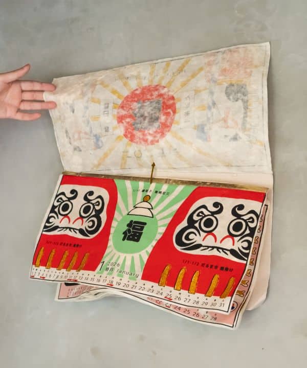 El estilo visual es alegre, festivo y colorido, manteniendo una estética tradicional con un toque moderno. Impreso sobre papel japonés tipo washi, este calendario tiene una textura especial que realza la calidad artística de cada diseño.