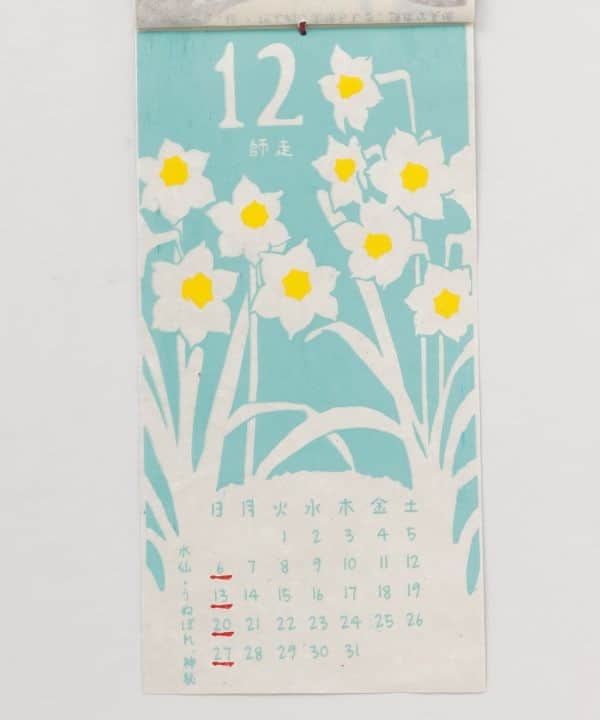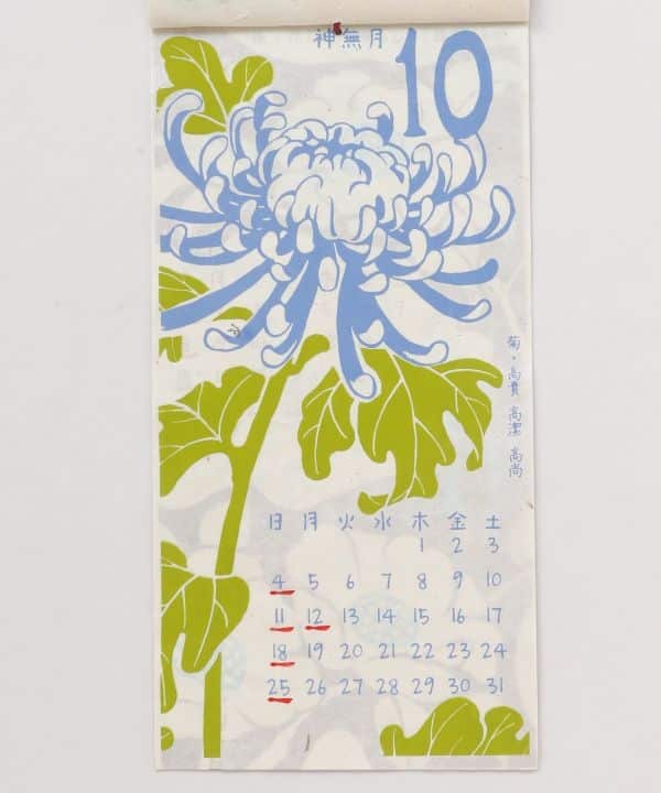 Calendario japonés 2026 con ilustraciones florales para cada mes. Impreso sobre papel tipo washi. Ideal para decorar o regalar.
