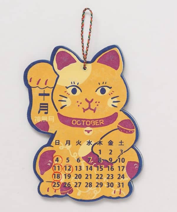 El Manekineko (招き猫) es uno de los amuletos más populares de Japón. Según la pata que levanta, invita a la suerte en los negocios, el dinero, o la protección familiar. Su imagen se ha convertido en un ícono cultural, presente en tiendas, hogares y restaurantes como símbolo de buena fortuna. En este calendario, su presencia ilumina el año nuevo con optimismo, abundancia y calidez tradicional.