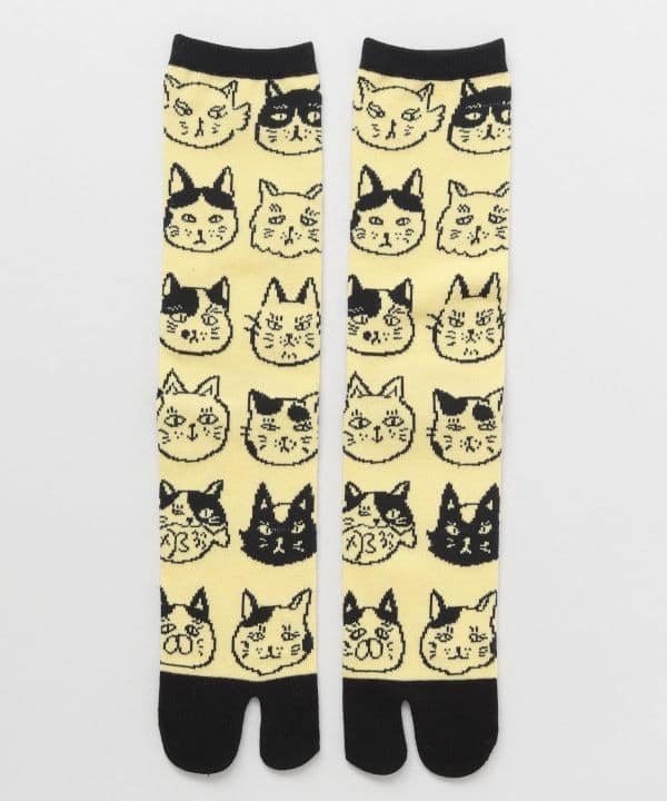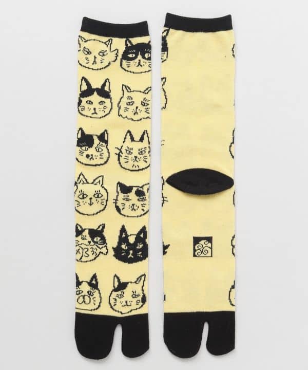 🐱 Medias tabi japonesas – Caritas de gato amarillo (猫ノお顔足袋)
