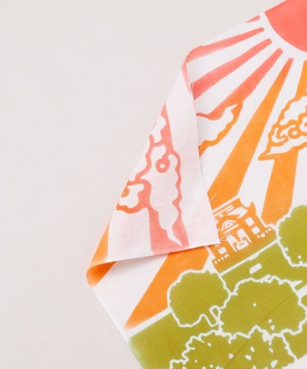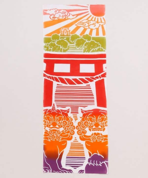 Este tenugui japonés celebra la esencia del sanpai (参拝), que significa acto de visitar un santuario o templo para orar. En su diseño se representa una escena completa y cargada de simbolismo: